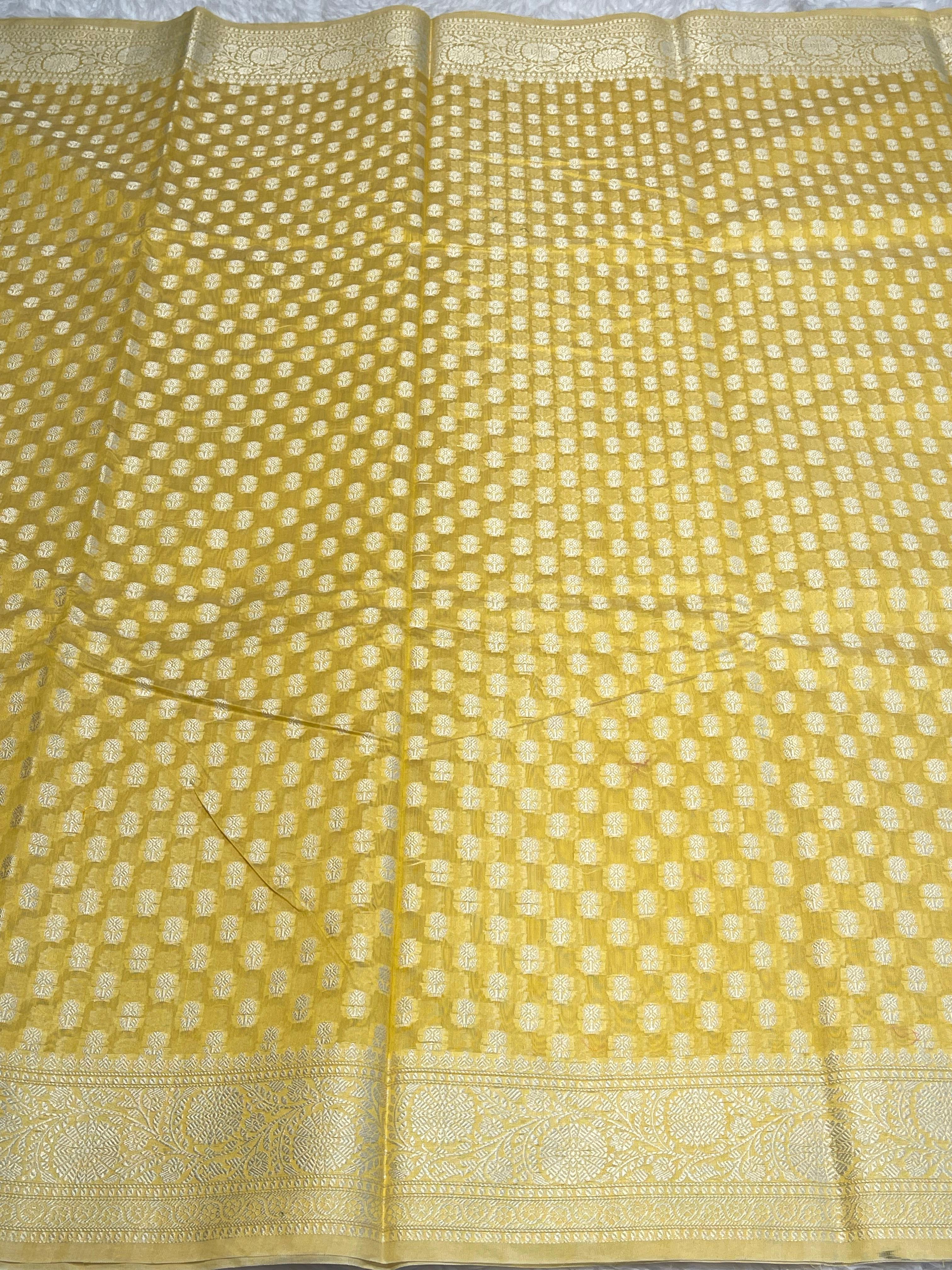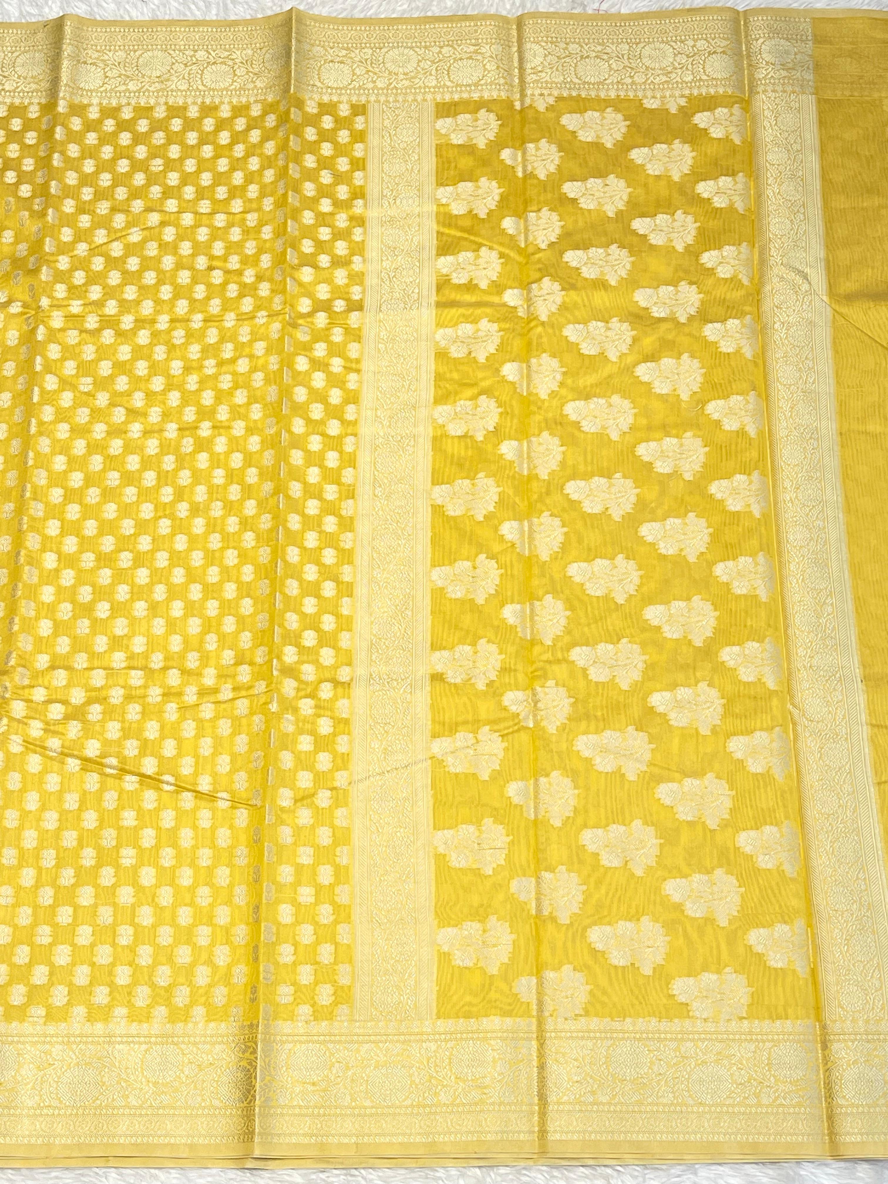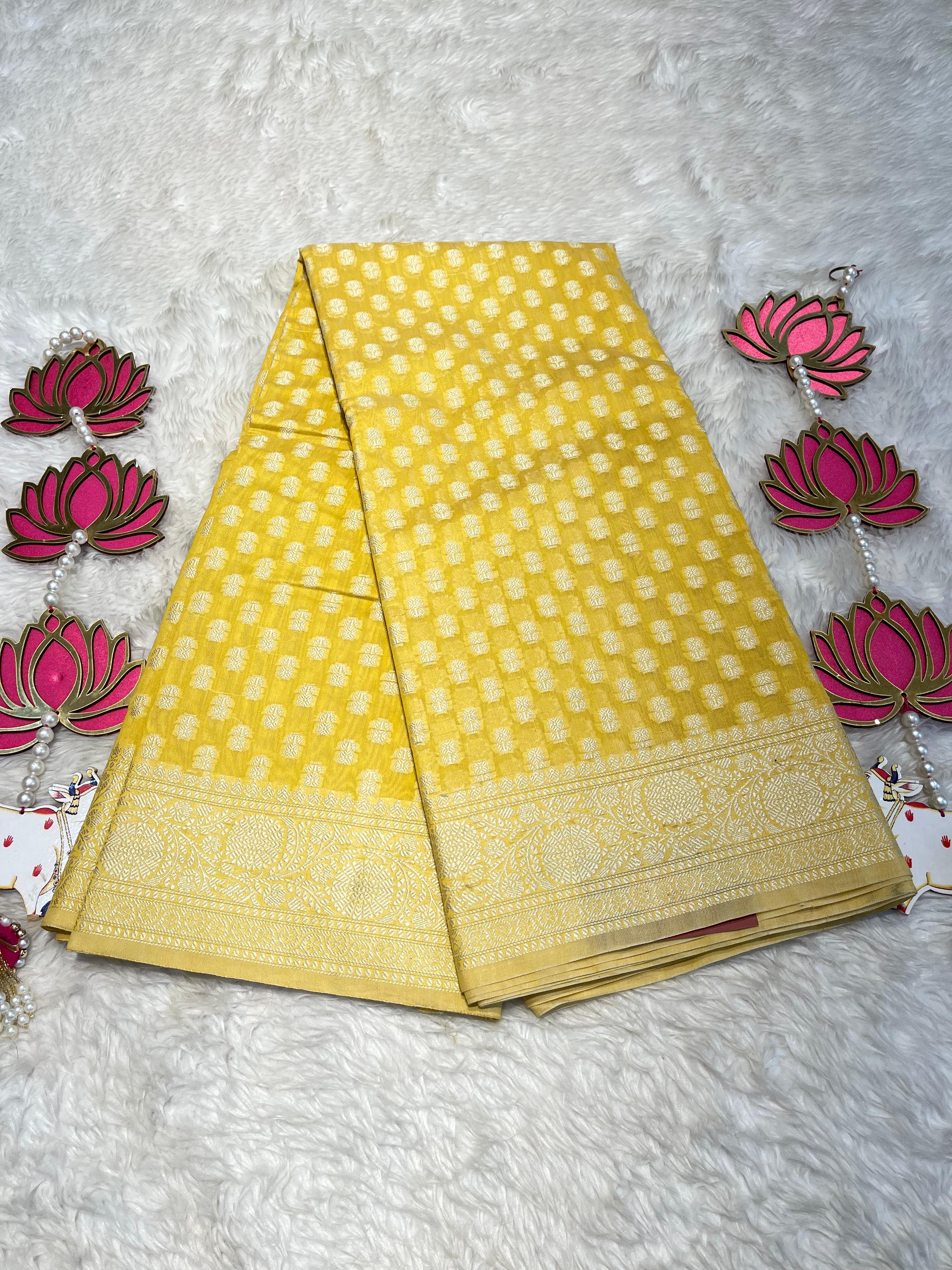 ANIKA'S BANARASI KORA COTTON - YELLOW SAREE