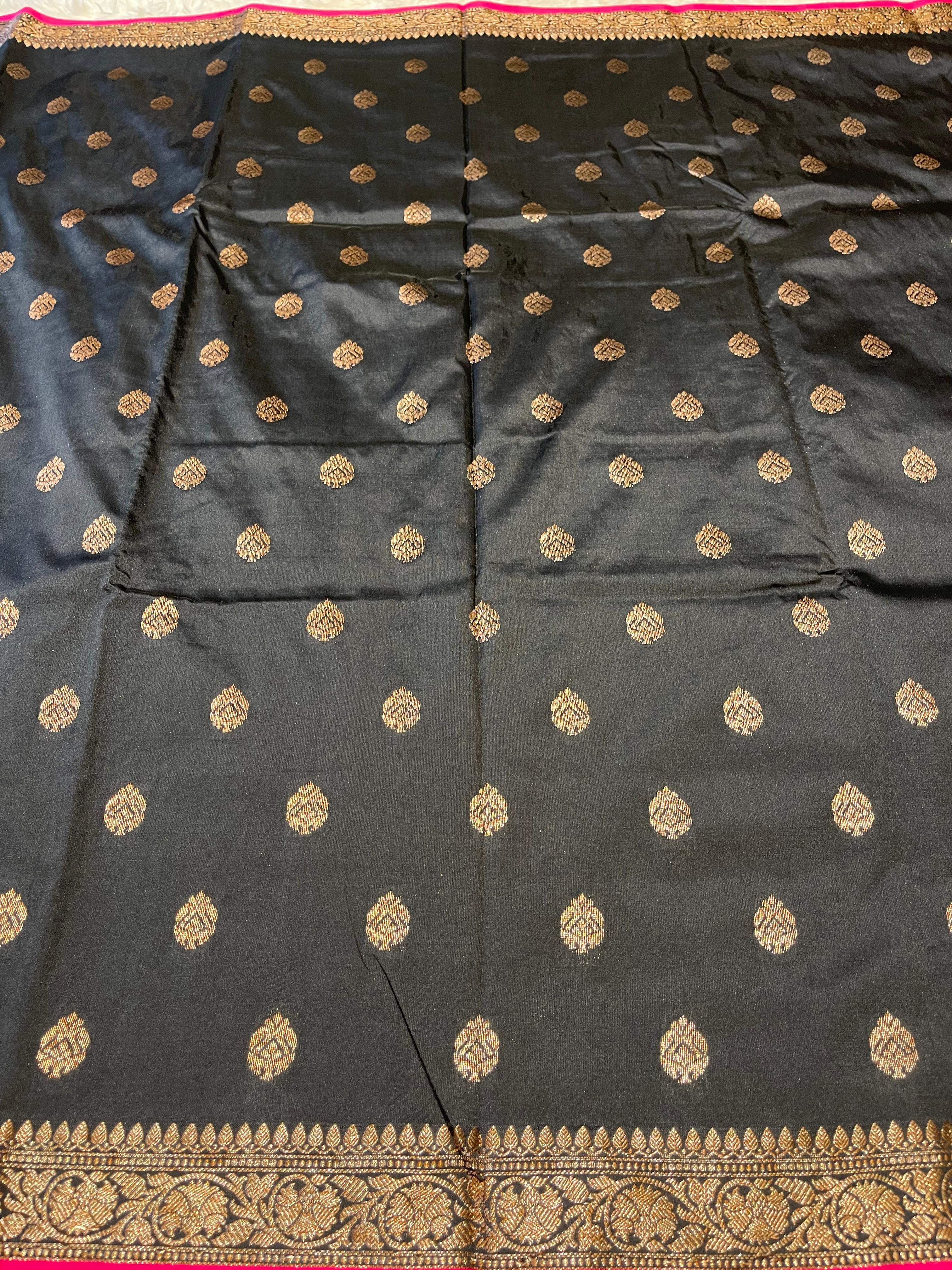 Anika's cotton silk Saree -Black pink butta