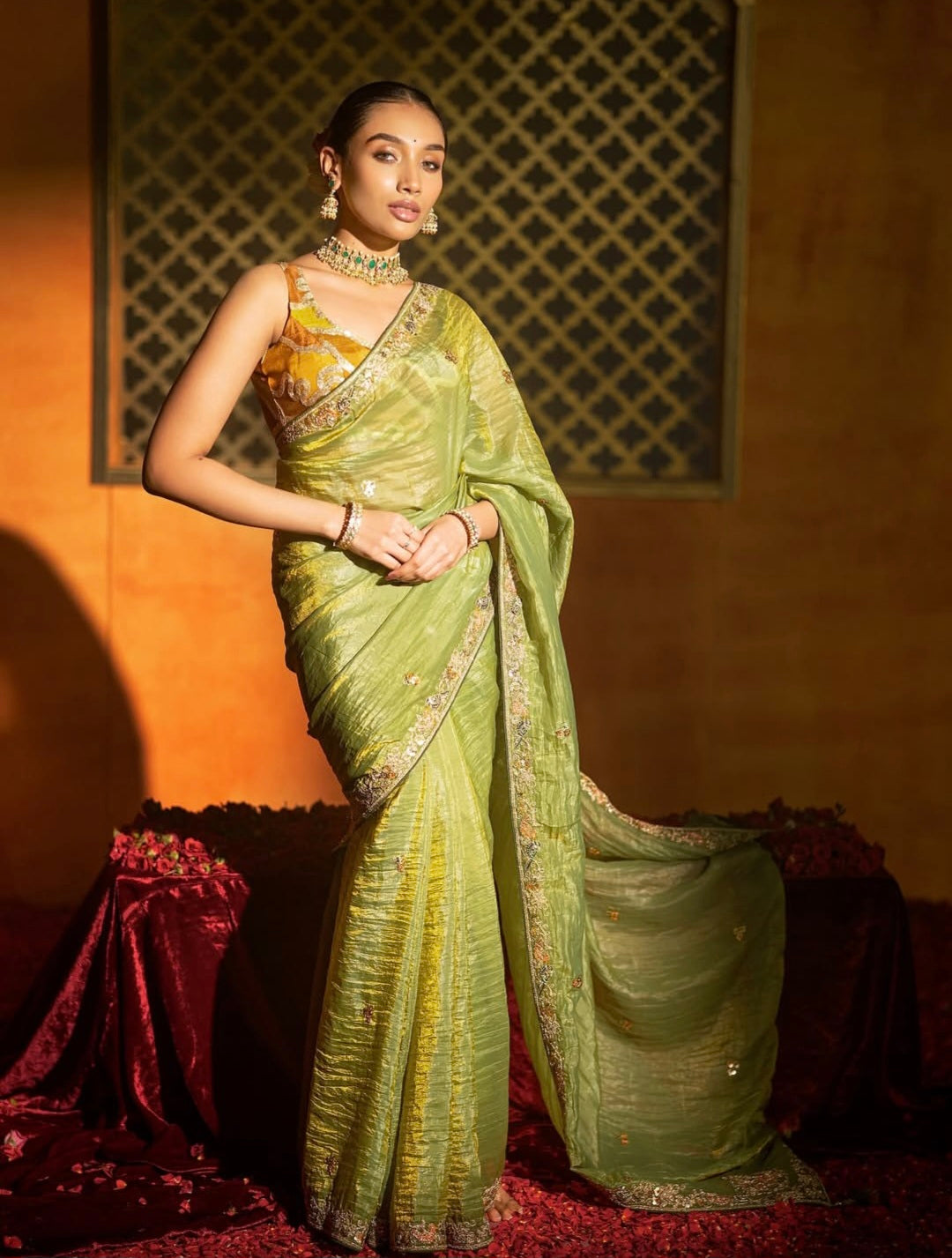 Anika's olive Green Designer Saree -Anaya Festive Edit A21