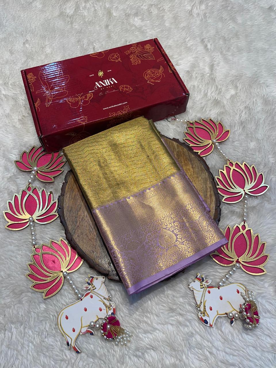 SWAYAMVARAM- DARK ANTIQUE GOLD WITH LILAC BORDER SILK SAREE