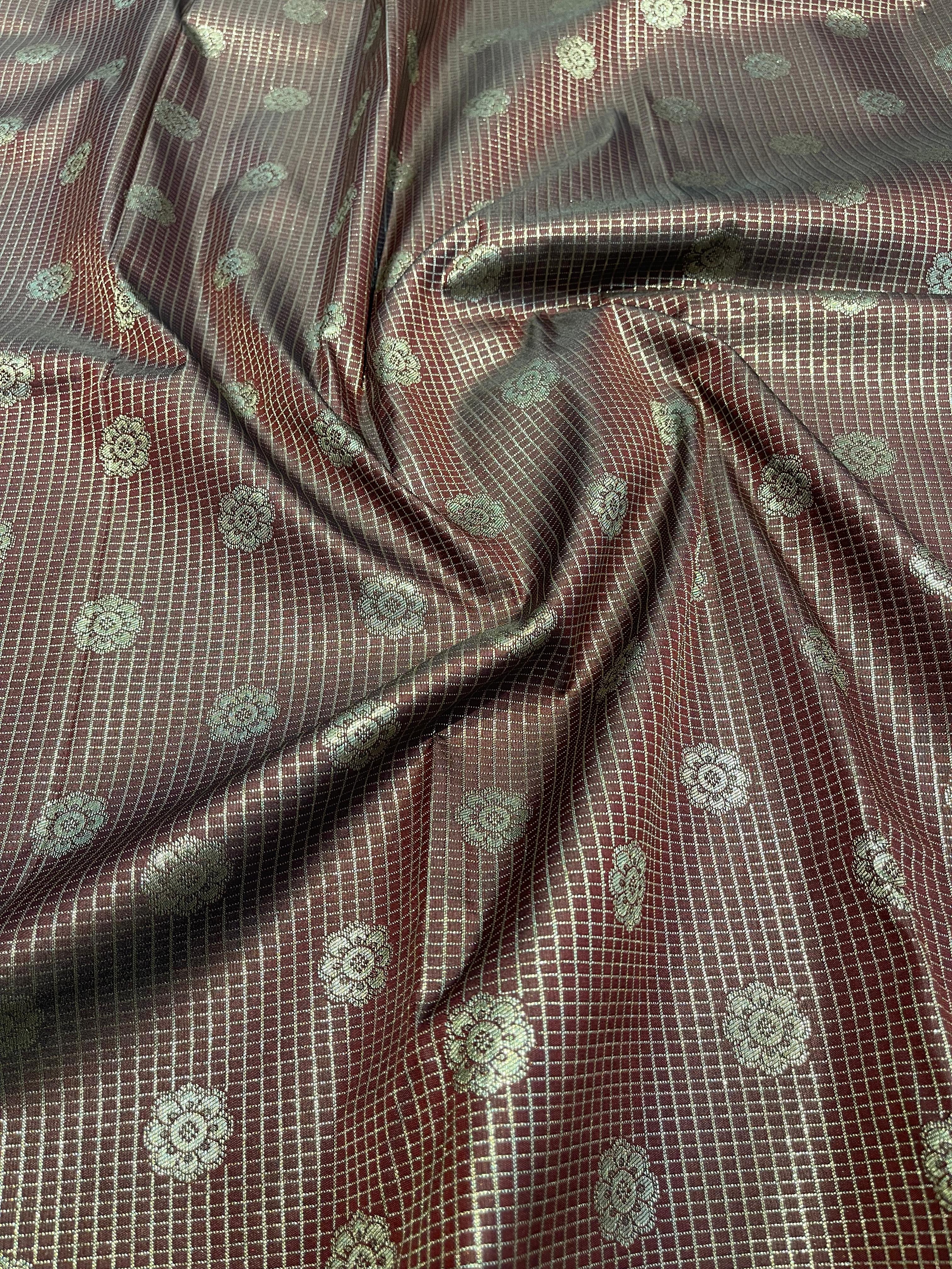 SWAYAMVARAM- COFFEE CHECKS SILK SAREE DUAL TONE